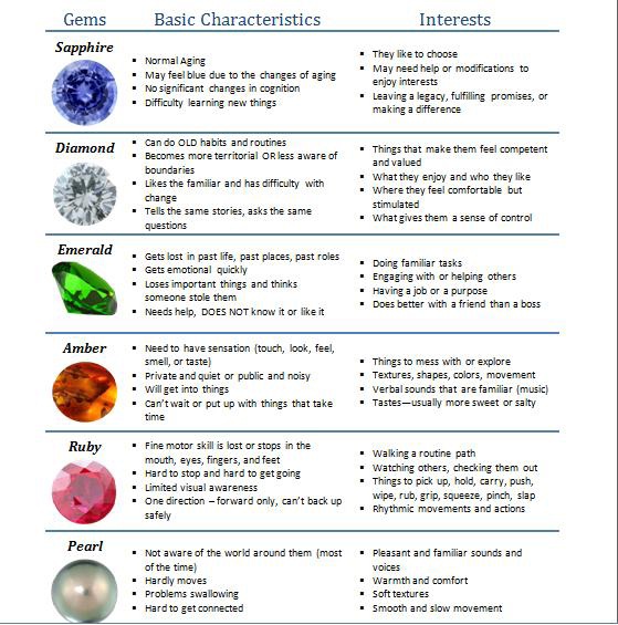 One of the most valuable tools PTs use in caregiver education is Teepa Snow’s GEMS® model, or the “Gemstones of Dementia.” This model reframes dementia by describing abilities in terms of gemstones—each stage highlighting both what has been lost and what remains.